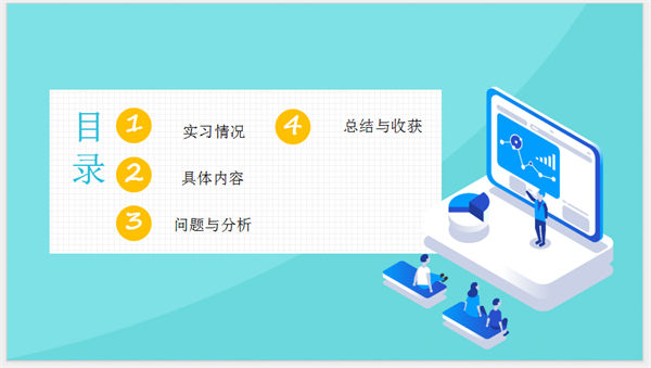 本作品内容为简约职场部门实习汇报PPT模板, 格式为 pptx, 大小7 MB, 页数为26,比例16:9, 请使用软件PowerPoint(2016)打开, 作品中主体文字及图片可替换修改,文字修改可直接点击文本框进行编辑,图片更改可选中图片后单击鼠标右键选择更换图片,也可根据自身需求增加和删除作品中的内容, 源文件无水印, 欢迎使用8M资料网。 如认为平台内容涉嫌侵权,可提出书面通知,我们将及时处理。