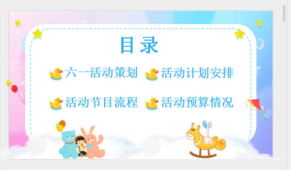 所属频道:儿童节PPT模板 更新时间:2025-07-28 素材版本:PowerPoint2007及以上版本(.pptx) 下载类型:付费下载 文件大小:10547 KB 显示比例:宽屏16:9 附件类型:.rar 声明:本站所有文章,如无特殊说明或标注,均来源于网络搜集整理。若侵犯了原著者的合法权益,可联系我们进行处理。本站原创发布的内容,任何个人或组织,未征得本站同意,禁止复制、盗用、采集、发布本站内容到任何网站、媒体等各类平台。