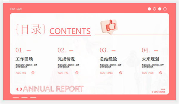 所属频道:其他行业PPT 更新时间:2025-09-29 素材版本:PowerPoint2007及以上版本(.pptx) 下载类型:付费下载 文件大小:6147 KB 显示比例:宽屏16:9 附件类型:.rar 目录:详细介绍下载地址相关下载发表评论 标签:手机直播带货直播红色