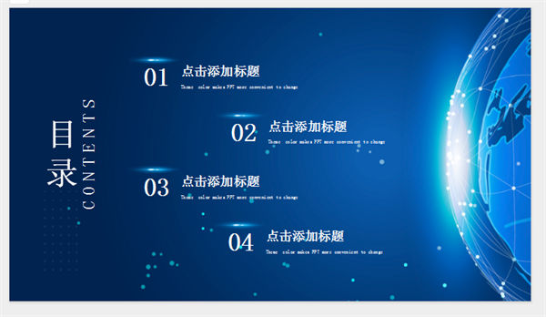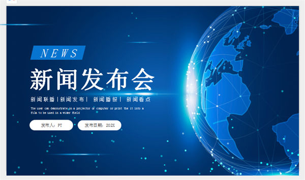 所属频道:其他行业PPT 更新时间:2025-09-29 素材版本:PowerPoint2007及以上版本(.pptx) 下载类型:付费下载 文件大小:6176 KB 显示比例:宽屏16:9 附件类型:.rar 目录:详细介绍下载地址相关下载发表评论 标签:蓝色点线地球新闻发布会