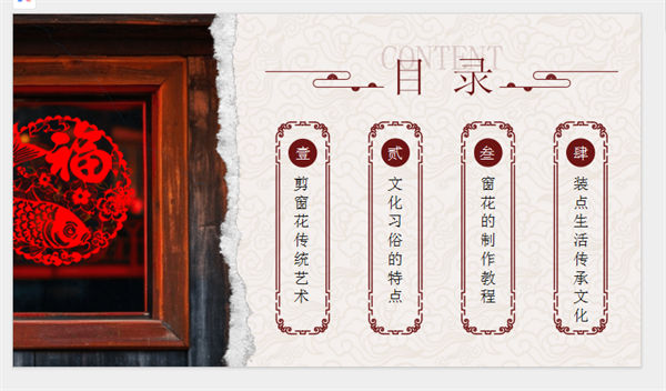 所属频道:其他行业PPT 更新时间:2025-09-29 素材版本:PowerPoint2007及以上版本(.pptx) 下载类型:付费下载 文件大小:10875 KB 显示比例:宽屏16:9 附件类型:.rar 目录:详细介绍下载地址相关下载发表评论 标签:非物质文化遗产非遗红色撕纸