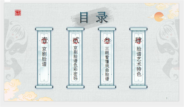所属频道:其他行业PPT 更新时间:2025-10-12 素材版本:PowerPoint2007及以上版本(.pptx) 下载类型:付费下载 文件大小:8548 KB 显示比例:宽屏16:9 附件类型:.rar 目录:详细介绍下载地址相关下载发表评论 标签:戏曲戏曲文化京剧