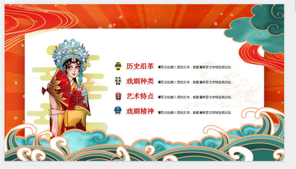 所属频道:其他行业PPT 更新时间:2025-10-16 素材版本:PowerPoint2007及以上版本(.pptx) 下载类型:付费下载 文件大小:8751 KB 显示比例:宽屏16:9 附件类型:.rar 目录:详细介绍下载地址相关下载发表评论 标签:戏曲戏曲文化国潮红色