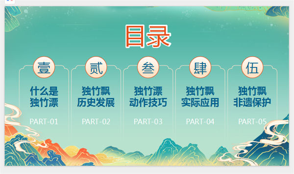所属频道:其他行业PPT 更新时间:2025-10-18 素材版本:PowerPoint2007及以上版本(.pptx) 下载类型:付费下载 文件大小:5222 KB 显示比例:宽屏16:9 附件类型:.rar 目录:详细介绍下载地址相关下载发表评论 标签:非物质文化遗产非遗青色国潮