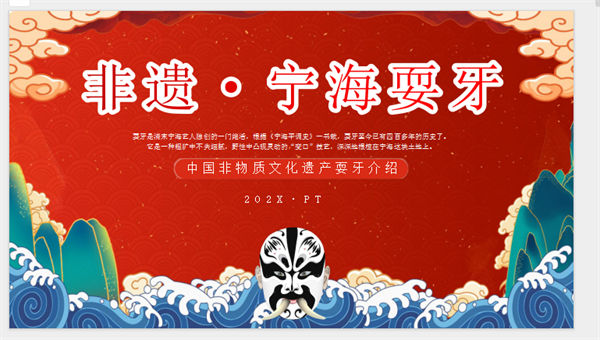 所属频道:其他行业PPT 更新时间:2025-10-19 素材版本:PowerPoint2007及以上版本(.pptx) 下载类型:免费下载 文件大小:3093 KB 显示比例:宽屏16:9 附件类型:.rar 目录:详细介绍下载地址相关下载发表评论 标签:非物质文化遗产非遗国潮红色