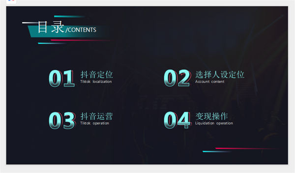 所属频道:其他行业PPT 更新时间:2025-10-22 素材版本:PowerPoint2007及以上版本(.pptx) 下载类型:付费下载 文件大小:7430 KB 显示比例:宽屏16:9 附件类型:.rar 目录:详细介绍下载地址相关下载发表评论 标签:短视频抖音蓝色