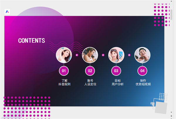 所属频道:其他行业PPT 更新时间:2025-10-23 素材版本:PowerPoint2007及以上版本(.pptx) 下载类型:付费下载 文件大小:5507 KB 显示比例:宽屏16:9 附件类型:.rar 目录:详细介绍下载地址相关下载发表评论 标签:短视频蓝紫抖音圆点斜线
