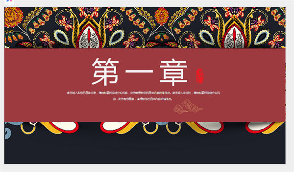所属频道:其他行业PPT 更新时间:2025-10-23 素材版本:PowerPoint2007及以上版本(.pptx) 下载类型:免费下载 文件大小:6929 KB 显示比例:宽屏16:9 附件类型:.rar 目录:详细介绍下载地址相关下载发表评论 标签:红色花纹民族风