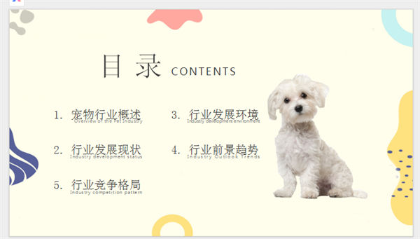 所属频道:其他行业PPT 更新时间:2025-10-27 素材版本:PowerPoint2007及以上版本(.pptx) 下载类型:付费下载 文件大小:8875 KB 显示比例:宽屏16:9 附件类型:.rar 目录:详细介绍下载地址相关下载发表评论 标签:彩色小狗宠物
