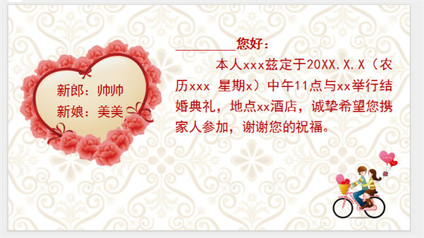 所属频道:爱情PPT模板 更新时间:2023-05-12 素材版本:PowerPoint2007及以上版本(.pptx) 下载类型:付费下载 文件大小:3.01 MB 显示比例:宽屏16:9 附件类型:.rar 目录:详细介绍下载地址相关下载发表评论 标签:结婚婚礼结婚请柬