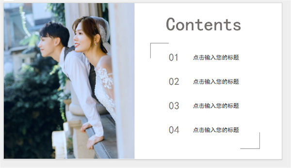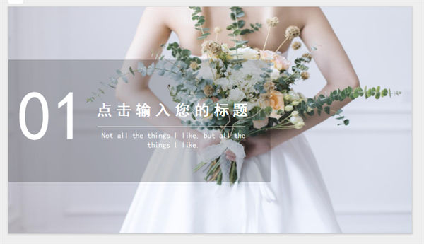 所属频道:爱情PPT模板 更新时间:2024-01-13 素材版本:PowerPoint2007及以上版本(.pptx) 下载类型:付费下载 文件大小:4.34 MB 显示比例:宽屏16:9 附件类型:.rar 目录:详细介绍下载地址相关下载发表评论 标签:电子相册婚礼相册结婚婚礼婚庆