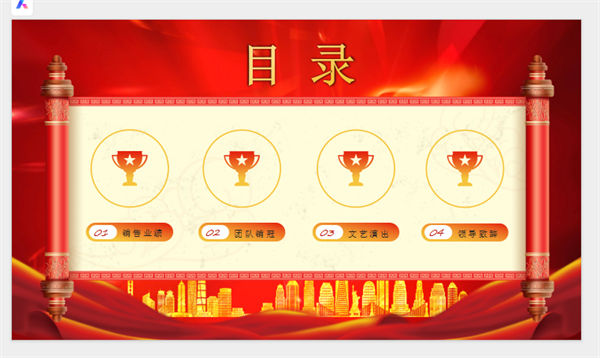 所属频道:年会颁奖PPT模板 更新时间:2024-03-20 素材版本:PowerPoint2007及以上版本(.pptx) 下载类型:付费下载 文件大小:6.92 MB 显示比例:宽屏16:9 附件类型:.rar 目录:详细介绍下载地址相关下载发表评论 标签:红色喜报双十一