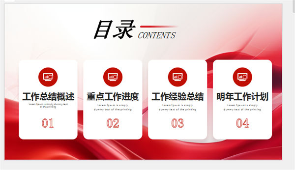 所属频道:述职报告PPT 更新时间:2025-12-08 素材版本:PowerPoint2007及以上版本(.pptx) 下载类型:付费下载 文件大小:7007 KB 显示比例:宽屏16:9 附件类型:.rar 目录:详细介绍下载地址相关下载发表评论 标签:红色曲线动感