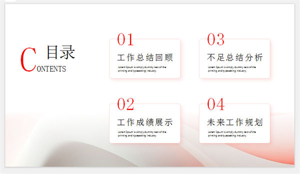 所属频道:述职报告PPT 更新时间:2025-12-08 素材版本:PowerPoint2007及以上版本(.pptx) 下载类型:付费下载 文件大小:2555 KB 显示比例:宽屏16:9 附件类型:.rar 目录:详细介绍下载地址相关下载发表评论 标签:曲线励志红色大气