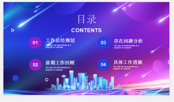 所属频道:述职报告PPT 更新时间:2025-12-17 素材版本:PowerPoint2007及以上版本(.pptx) 下载类型:付费下载 文件大小:4988 KB 显示比例:宽屏16:9 附件类型:.rar 目录:详细介绍下载地址相关下载发表评论 标签:渐变城市剪影蓝紫