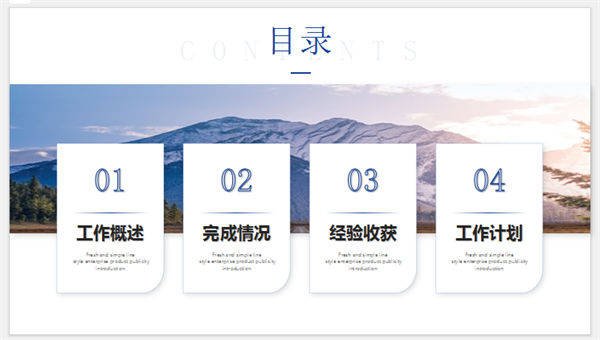 所属频道:工作总结PPT 更新时间:2025-12-31 素材版本:PowerPoint2007及以上版本(.pptx) 下载类型:付费下载 文件大小:5882 KB 显示比例:宽屏16:9 附件类型:.rar 目录:详细介绍下载地址相关下载发表评论 标签:蓝色山峰励志高山