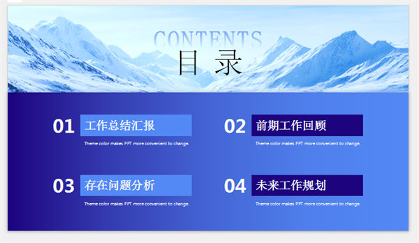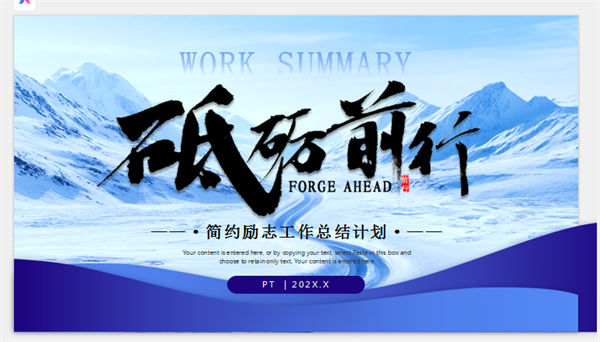 所属频道:工作计划PPT 更新时间:2025-12-17 素材版本:PowerPoint2007及以上版本(.pptx) 下载类型:付费下载 文件大小:4884 KB 显示比例:宽屏16:9 附件类型:.rar 目录:详细介绍下载地址相关下载发表评论 标签:蓝色群山励志雪山
