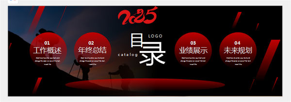 所属频道:工作计划PPT 更新时间:2025-12-18 素材版本:PowerPoint2007及以上版本(.pptx) 下载类型:付费下载 文件大小:5832 KB 显示比例:宽屏16:9 附件类型:.rar 目录:详细介绍下载地址相关下载发表评论 标签:励志宽屏黑色红黑攀登